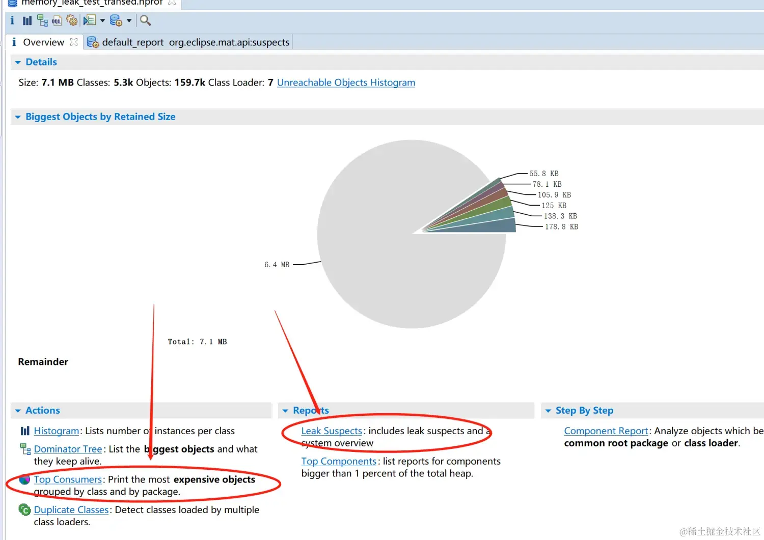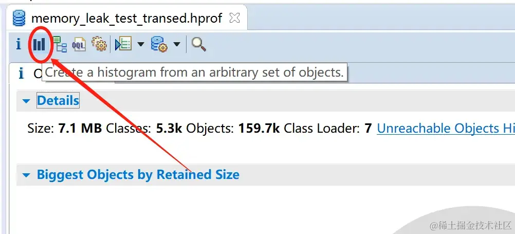 Biggest Objects可以查看相关的更详细的信息;Leak Suspect则,