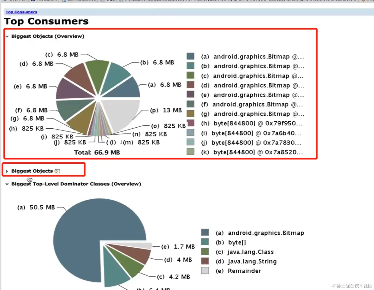 Top Consumers 列出来那么占用内存比较高的对象;