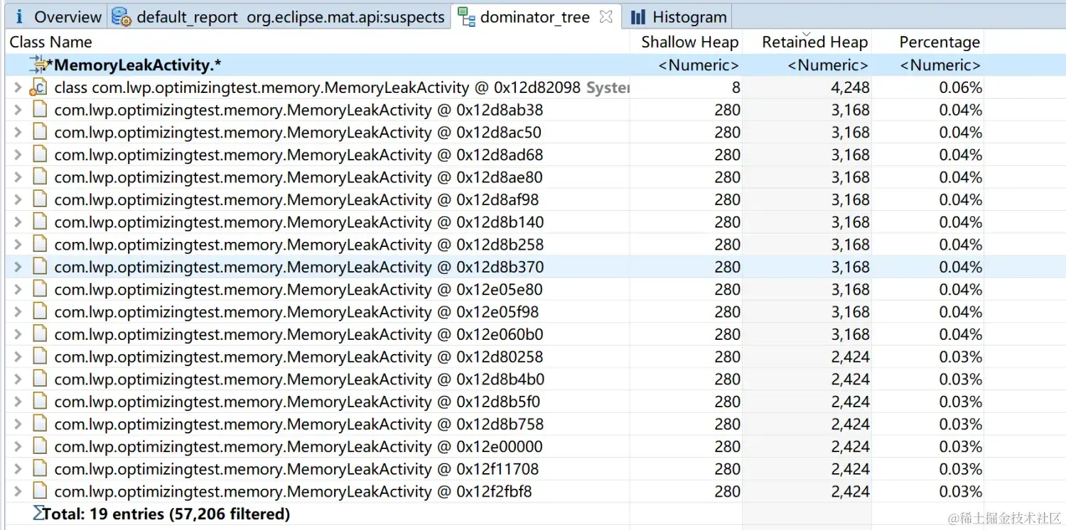 类的形式进行摆放的, 即Group by Class; 通过Group by package的视图查看形式, 我们可以很容易地找到MemoryLeakActivity:接下来,点击某一个实例,右键, 选择
