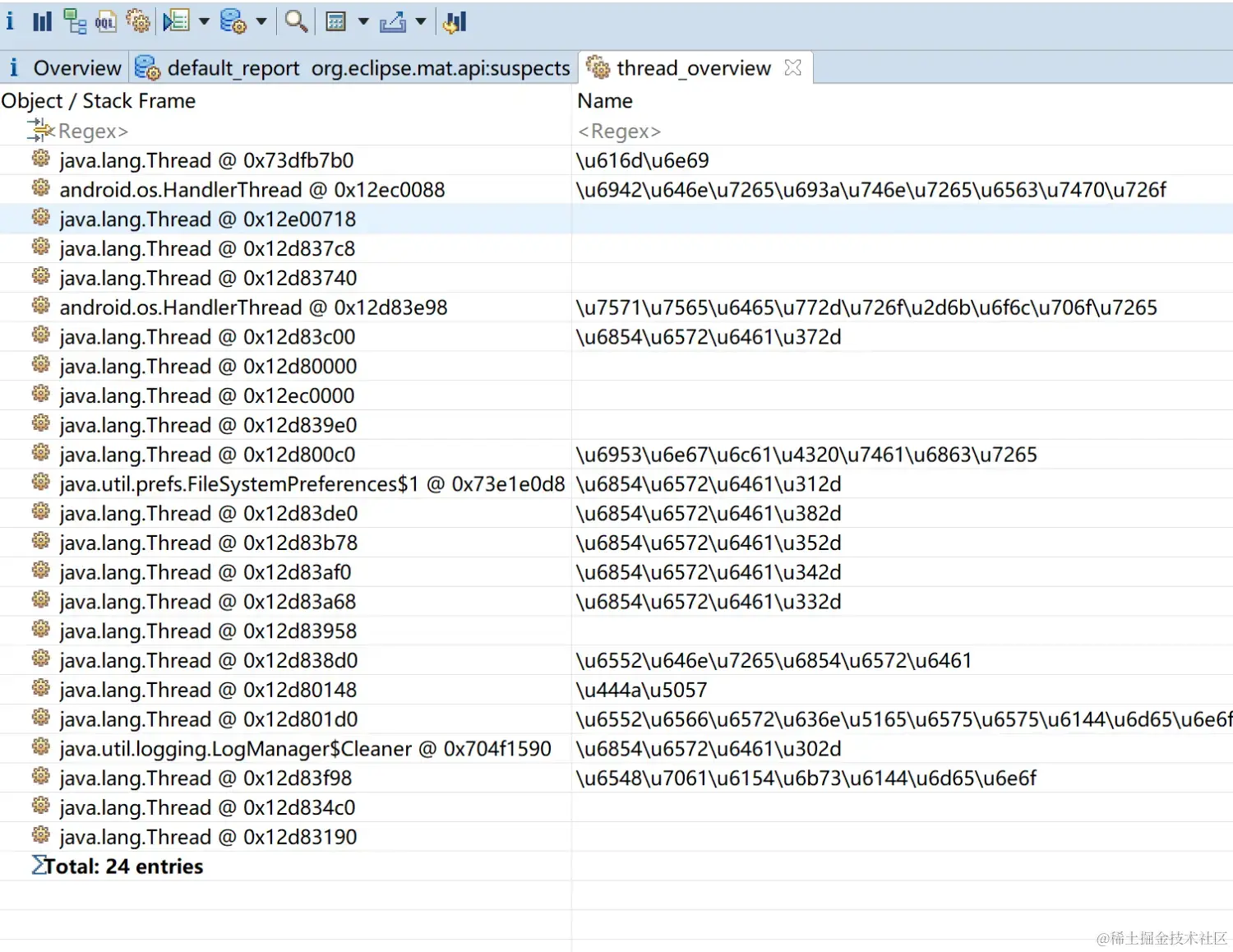 Unreachable Objects Histogram可以点击查看可被回收的 但是仍然在内存当中 没被回收的对象: