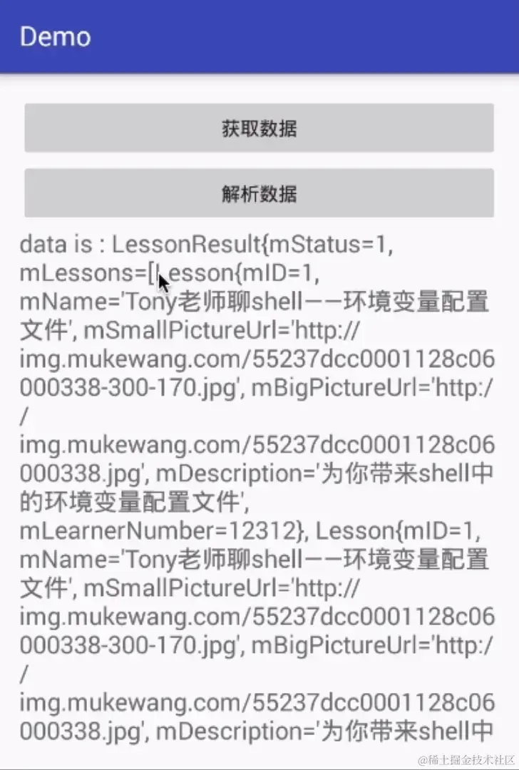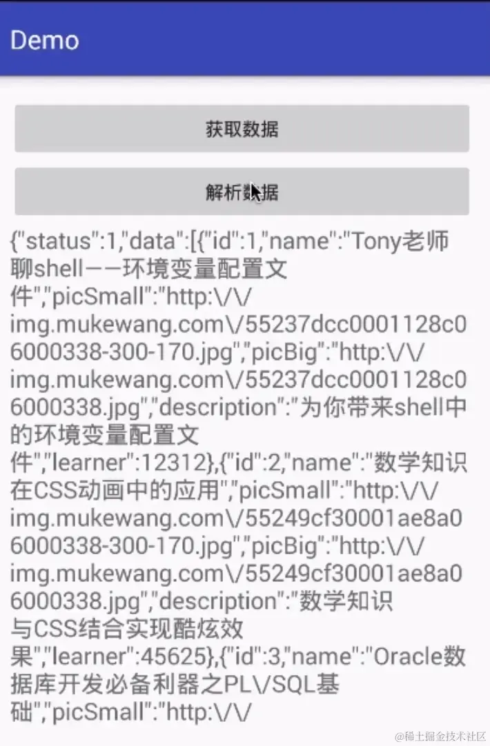 - 获取数据按钮:点击后,去请求一个接口,拿到数据;