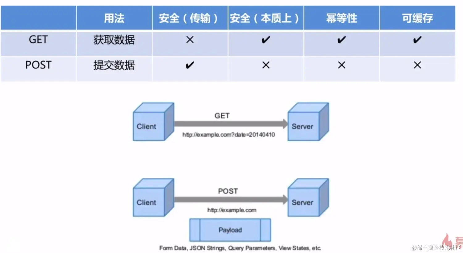 - 从本质意义上讲,GET是安全的,POST不安全: