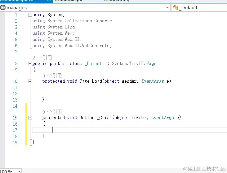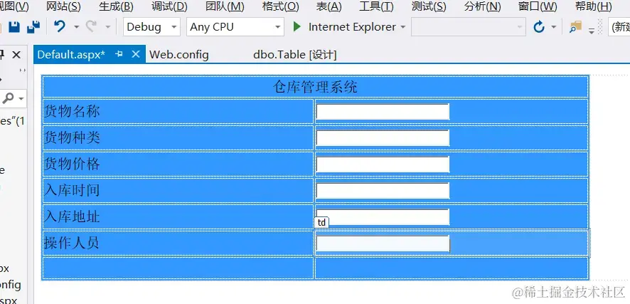 回来default窗口,双击设计界面里边入库按钮,开始编写逻辑: