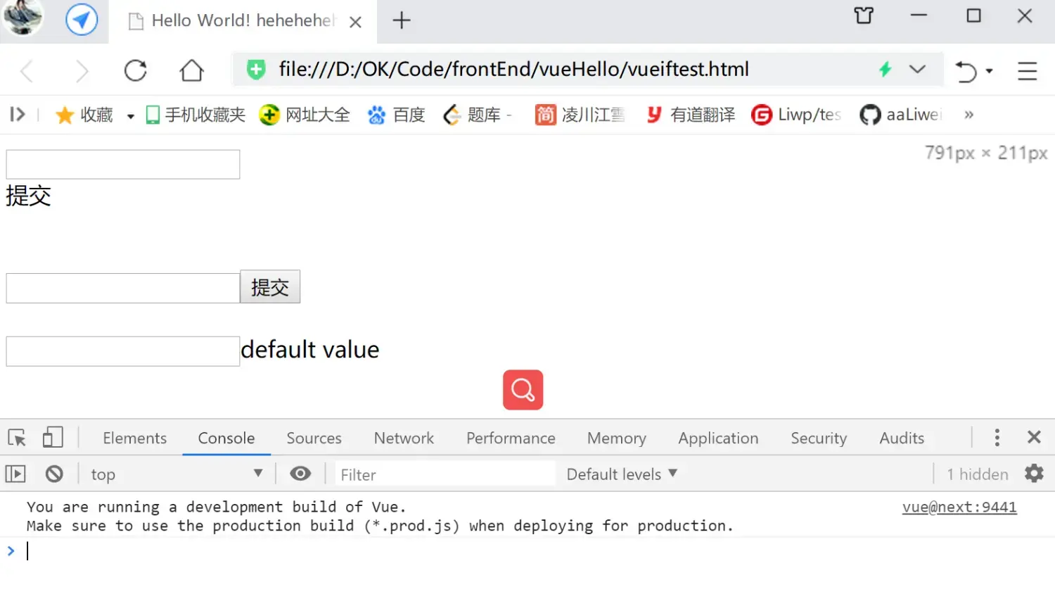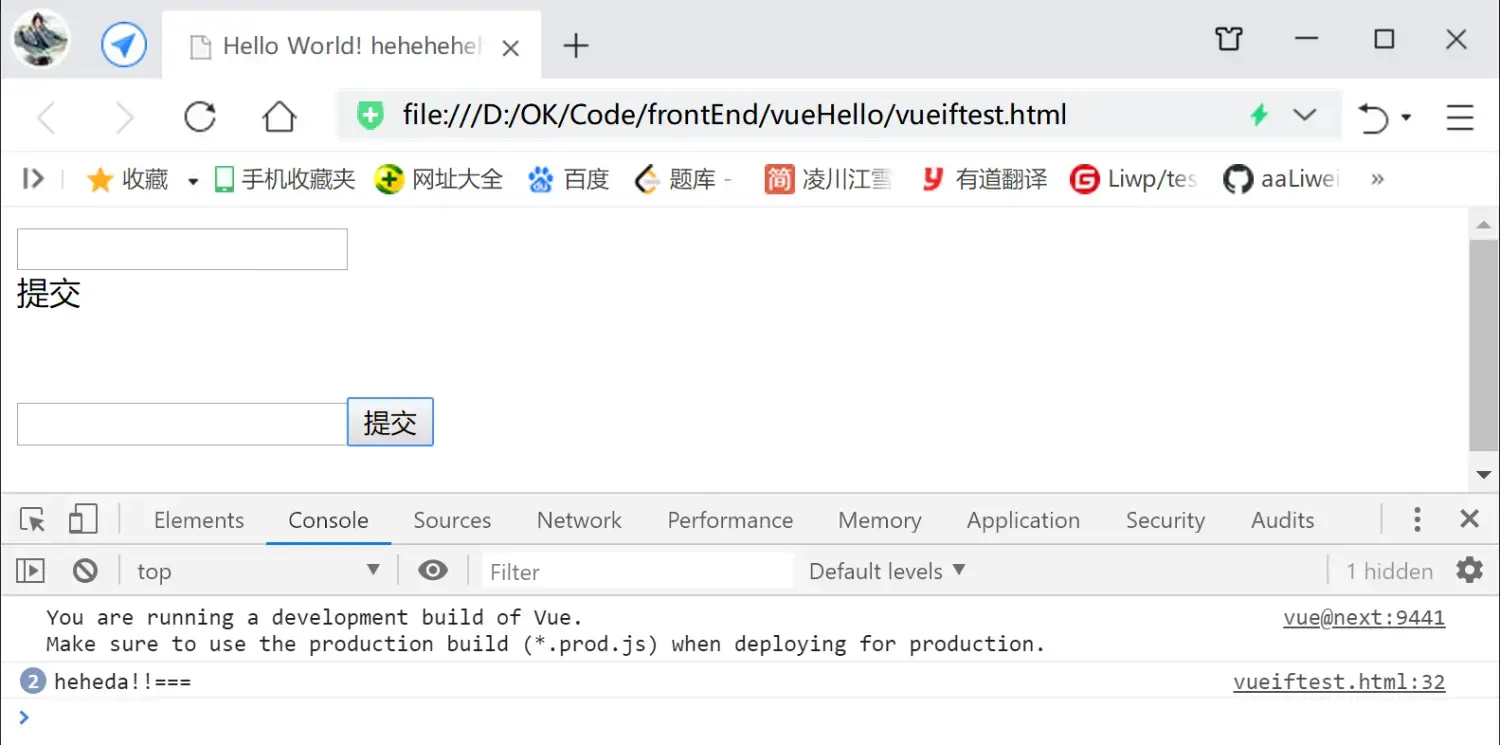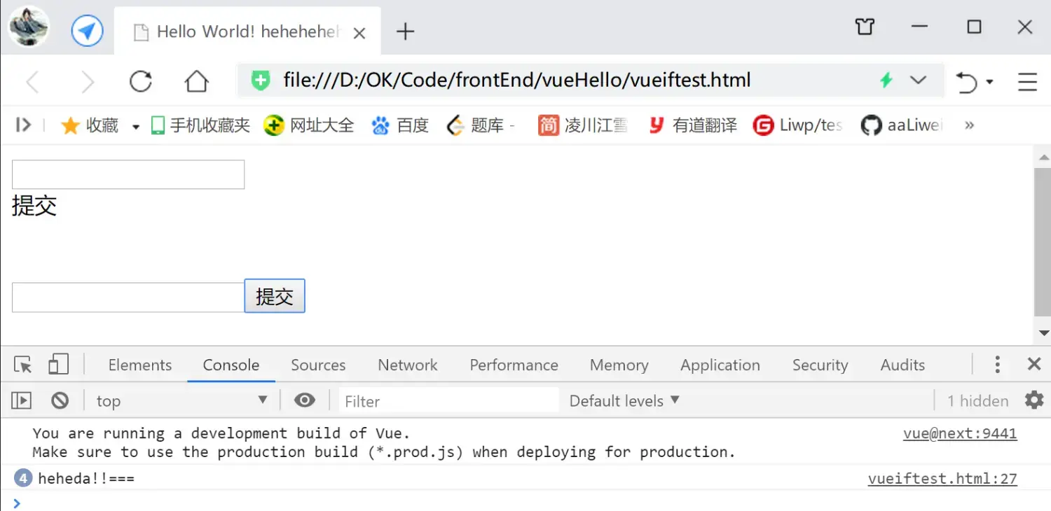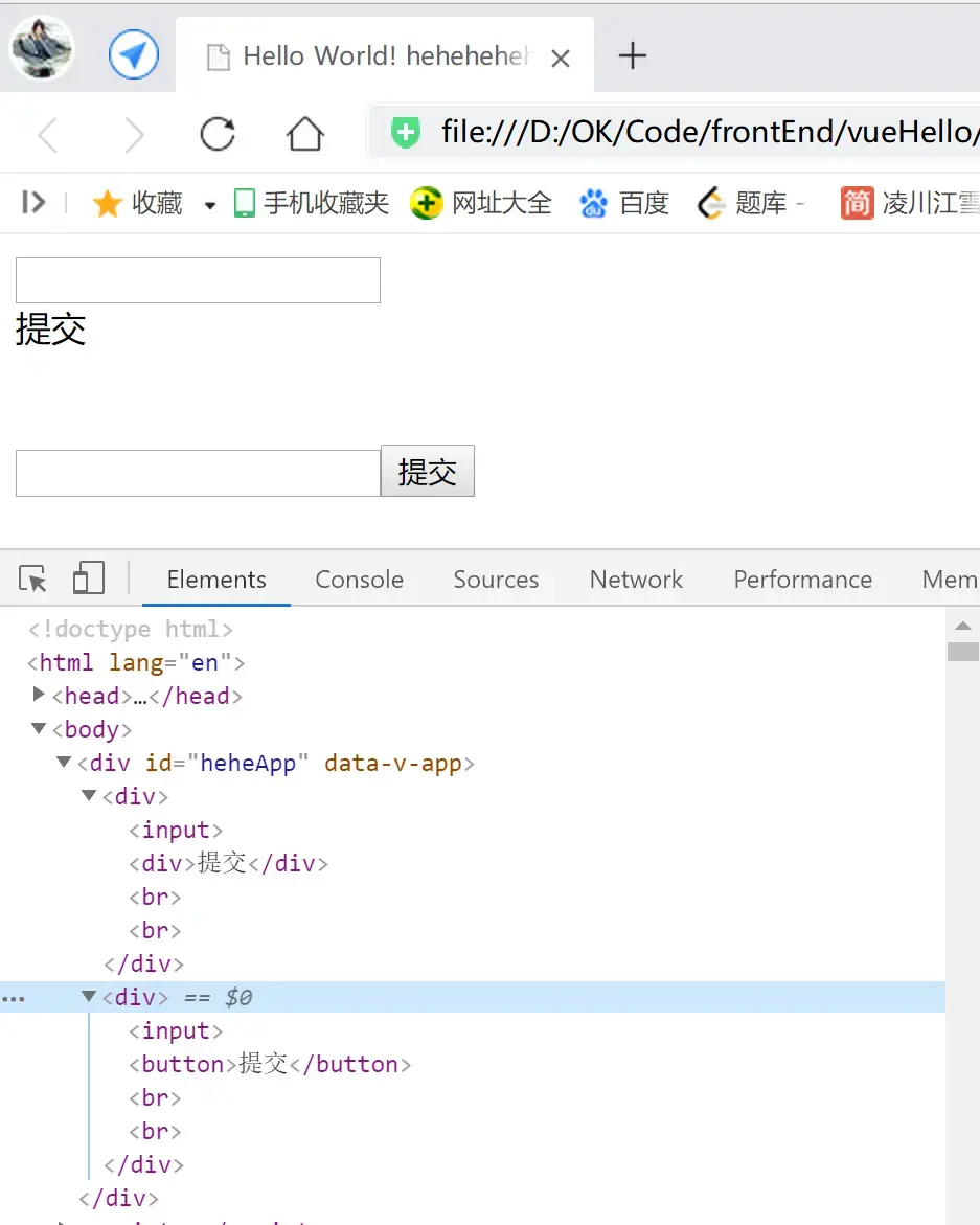 ####注意,slot标签上是无法直接添加事件(修饰符)的,如有需要,可以在外层包裹一层标签,再加上事件 ``` ``` 运行,点击提交文本或按钮: