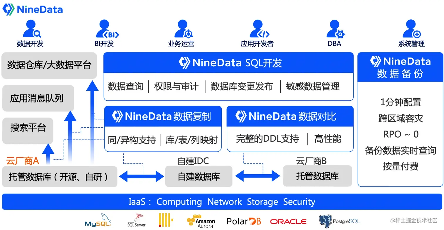 NineData 提供的企业级数据库开发平台,可以帮助企业实现SQL审核、数据库规范、敏感数据保护、数据复制、数据备份等能力。同时,NineData 依托华为云数据库的高可用、高可靠、高安全、高性能、即开即用、便捷运维和弹性伸缩等数据库能力,为用户提供了全链路的数据安全保障和高效的数据管理能力。