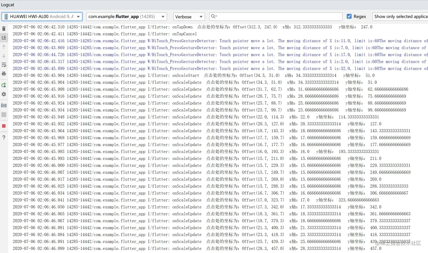 'x轴:${details.globalPosition.dx} y轴坐标: \${details.globalPosition.dy}');
