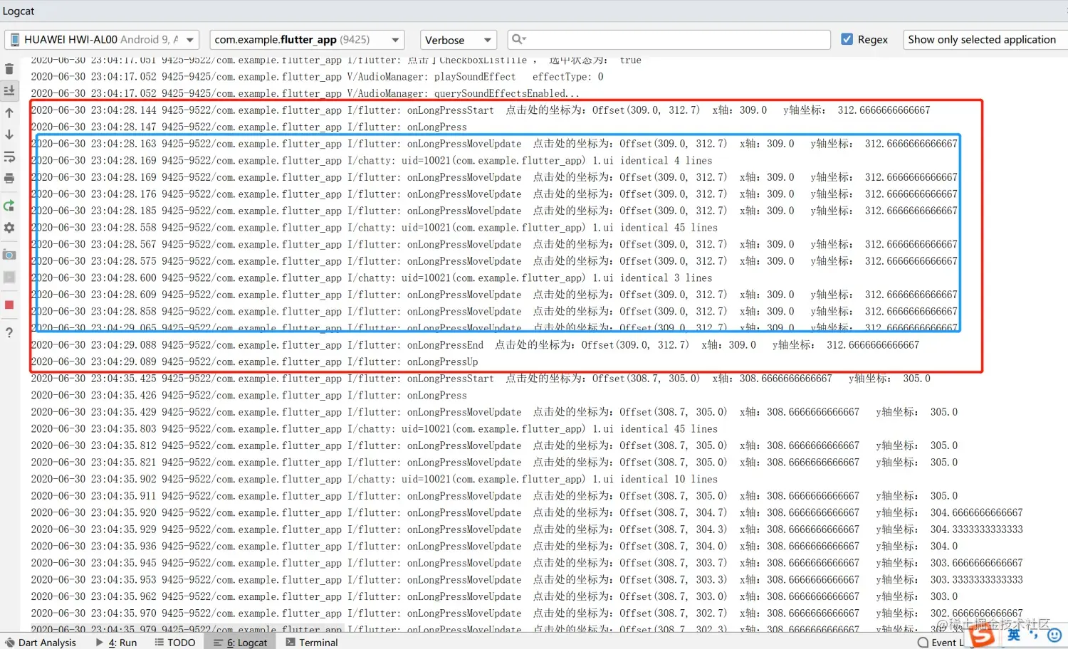 //// 'onLongPressStart 点击处的坐标为:${details.globalPosition} '
