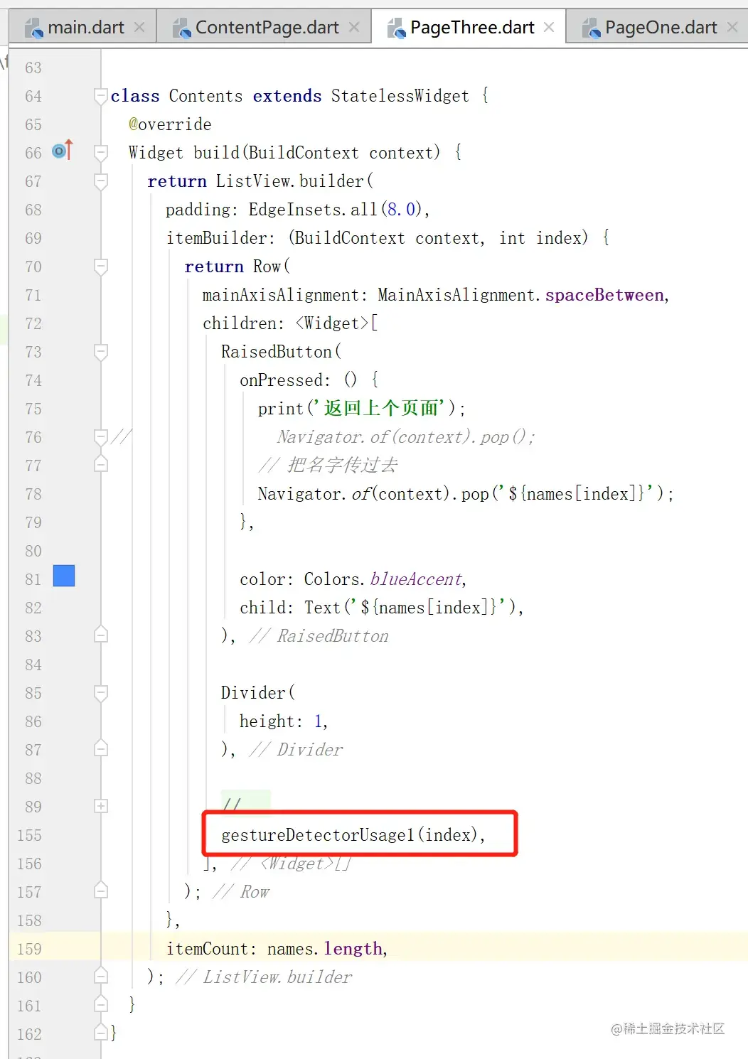 // 使用 GestureDetector 把每一个Item 的 Text组件 给包括起来