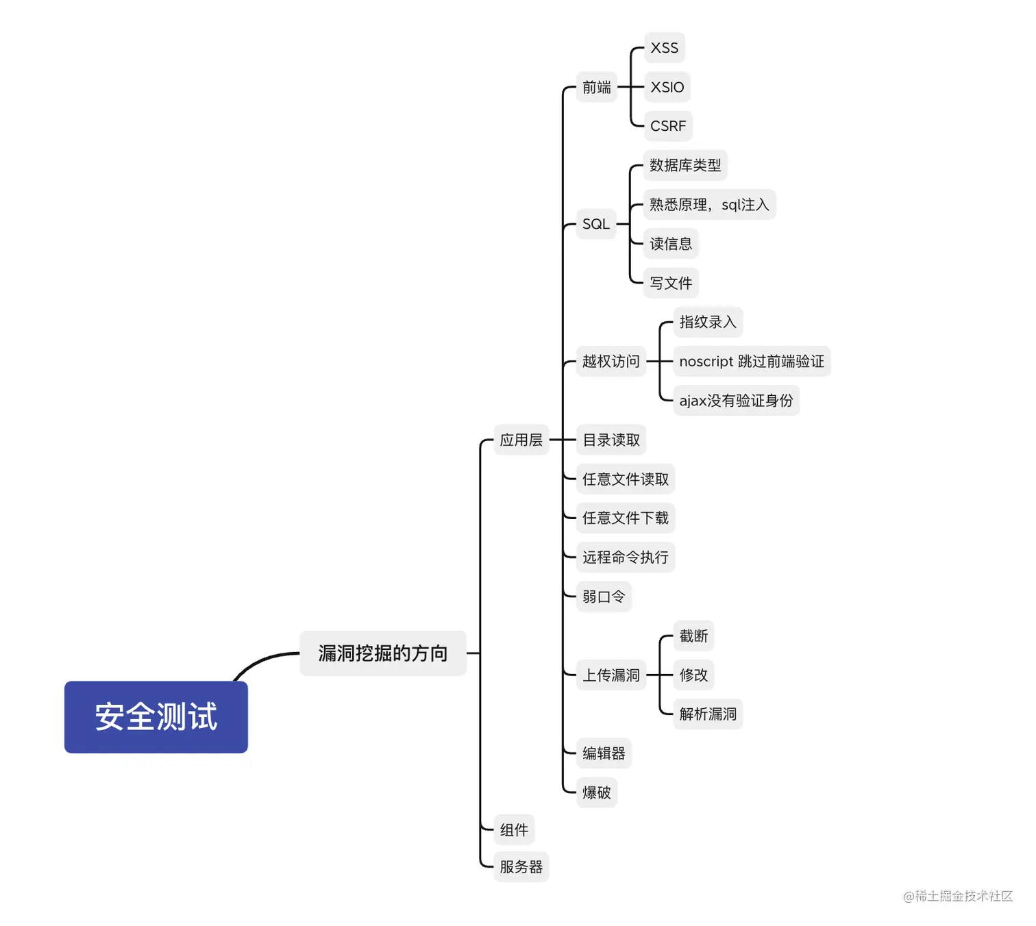 - 水平越权:同一权限(角色)级别的用户之间所产生的问题,如A用户可以未授权访问B用户的数据等。