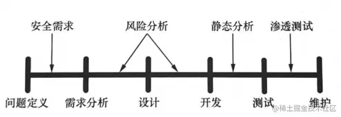 安全测试是在IT软件产品的生命周期中,特别是产品开发基本完成到发布阶段,对产品进行检验以验证产品符合安全需求定义和产品质量标准的过程,可以说,安全测试贯穿于软件的整个生命周期。下面通过一张图描述软件生命周期各个阶段的安全测试,如下图所示。