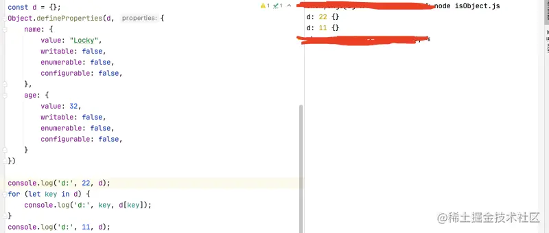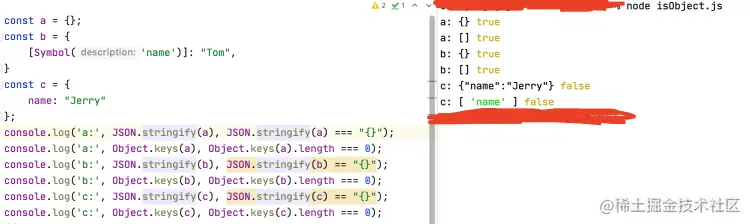 JS如何判断一个对象是空对象(不是null哈) 剁椒鱼鳞 2023-06-06 115 阅读1分钟 已知一个对象(Object),如何判断是一个空对象,即{ }。很多人会想到采用Object.keys(obj).length === 0,或者JSON.stringify(obj) === "{}",这些都是不严谨的,甚至for-in都是错误的。 Object.keys 如果key为symbol的话,object.keys拿到的长度仍旧为0 JSON.stringify 见上图,拿到的仍旧为"{}",所以存在漏洞 for-in循环 如果对象设置不可枚举,那么for-in进而就成了摆设了 Reflect.ownKeys() 综上,最靠谱的方案就是Reflect.ownKeys()。