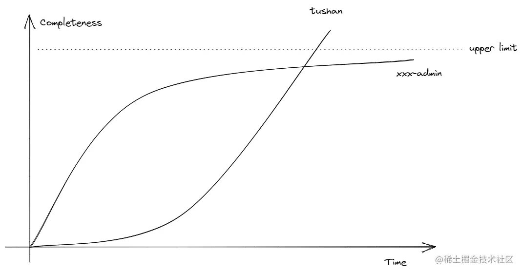 相比于一个现成系统,tushan更多的将自己定位成一个工具库,你可以通过提供的现成工具快速构建出一个开箱即用的后台管理平台的前端项目,而作为工具库的好处在于你可以将tushan无缝的嵌入现有的前端项目中,此外,tushan的学习成本是一个非常平滑的曲线而不是一个陡峭的曲线。渐进式的开发体验会让人很舒服。