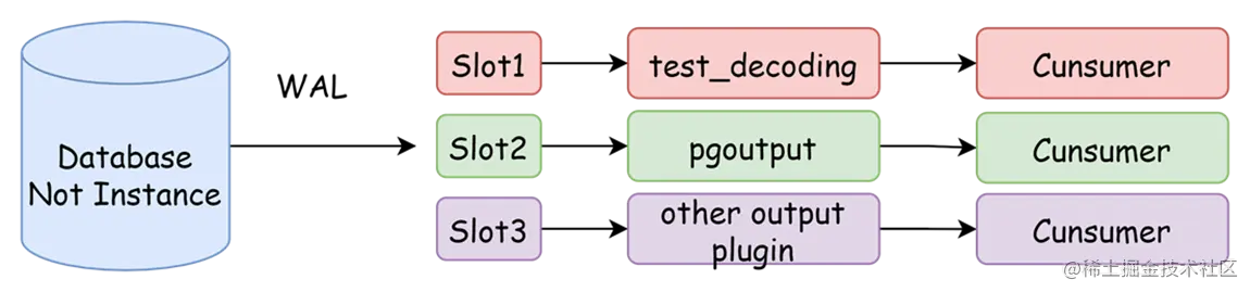 输出插件负责将WAL日志解码为可读的格式,常用的插件用test_decoding(多用来测试),pgoutput(默认使用),wal2json(输出为json)。PostgreSQL定义了一系列回调函数,我们除了使用上述插件,可以通过回调函数编写自己的输出插件。