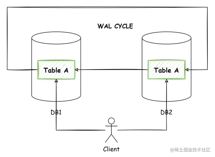 当数据迁移涉及双向同步的管道时,例如想实现双主双写,对数据库同一对象进行操作,就会出现WAL循环。