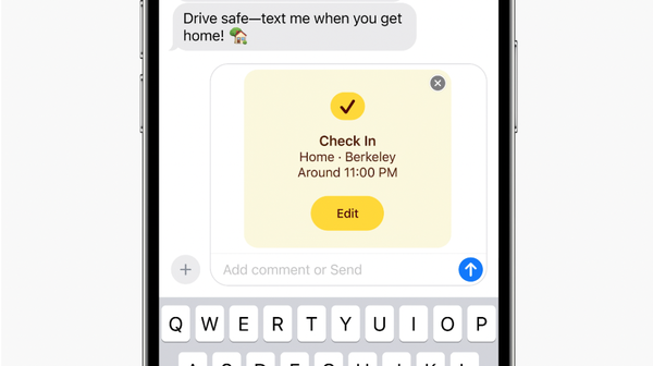 4). Message 增强了搜索功能,增加语音转文字功能。另外增加了一个叫 Checkin 的功能,到家之后可以给家人和朋友报平安,路上出了意外情况也可以自动分享朋友和家人。另外推出了全新贴纸功能,类似自定义表情包。