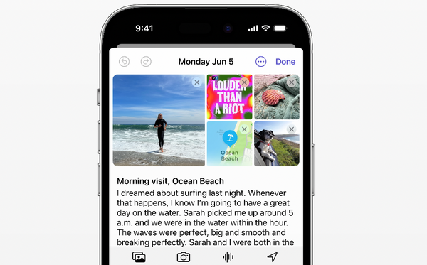 7). 发布了一个名为 Journal 的新 App,类似一个日记本。