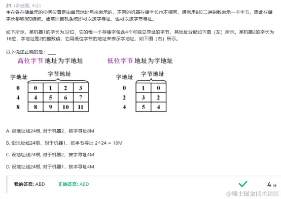 机器1按字寻址,1字=32bit=4B ,16M(B)/4B = 4M(Word);选上D