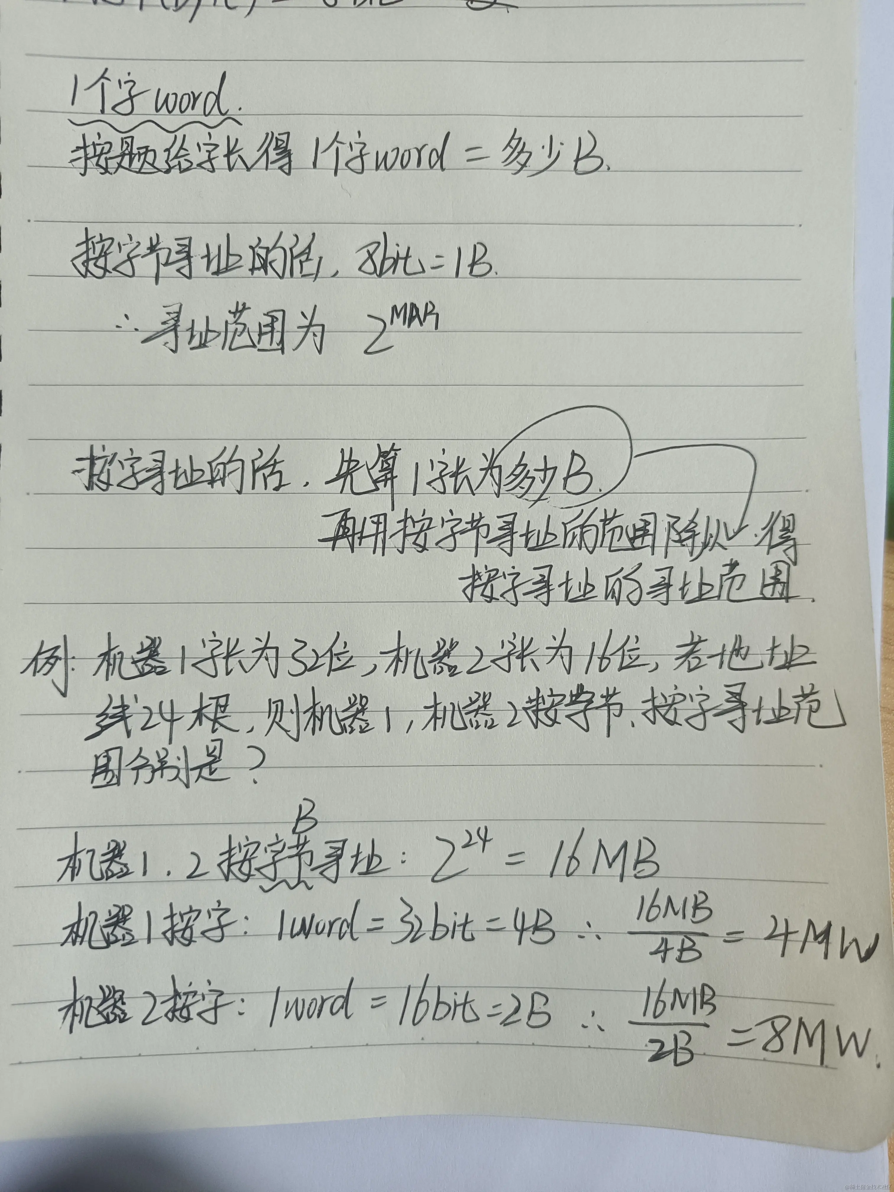 机器2按字寻址,1字=16bit=2B,16M(B)/2B= 8M(Word);选上A