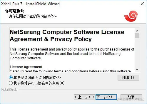 - 双击下载好的Xshell Plus 7安装包,打开安装向导,选择“下一步”。