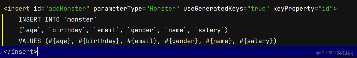 1. insert、delete、update、select 这个我们在前面讲解过,分别对应增删改查的方法和SQL语句的映射.