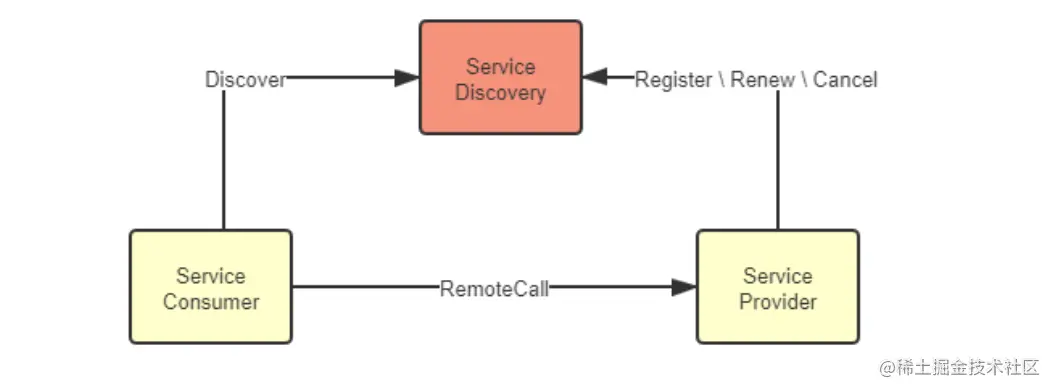 每个服务启动的时候,会将自身的服务和ip注册到注册中心,其他服务调用的时候,只需要向注册中心申请地址即可。