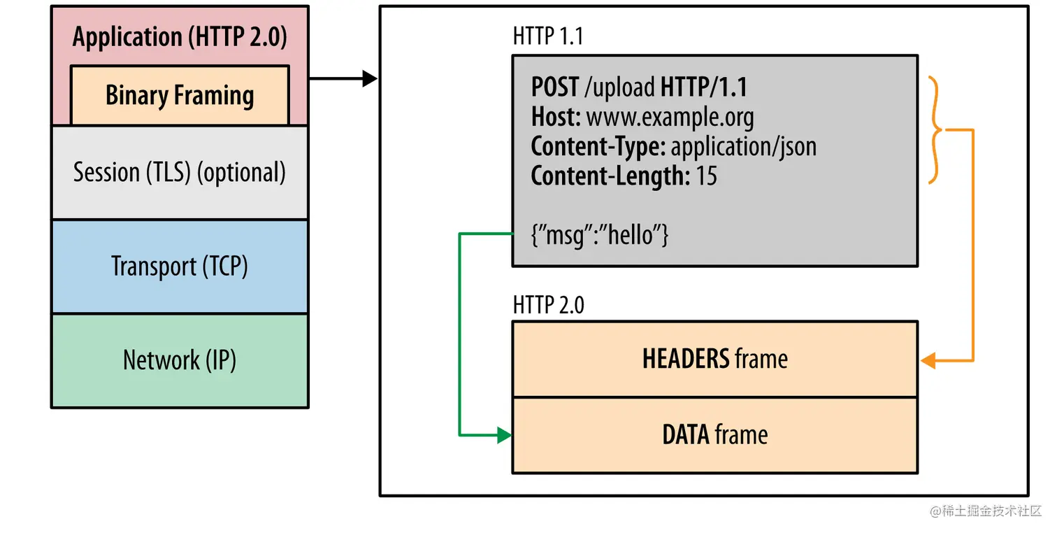 - HTTP/1里的payload对应HTTP/2里的 DATA frame