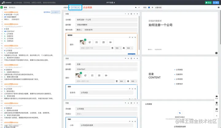 - 内容转PPT:使用现有的 PPT 转换工具,这种工具往往需要某种固定的文本格式