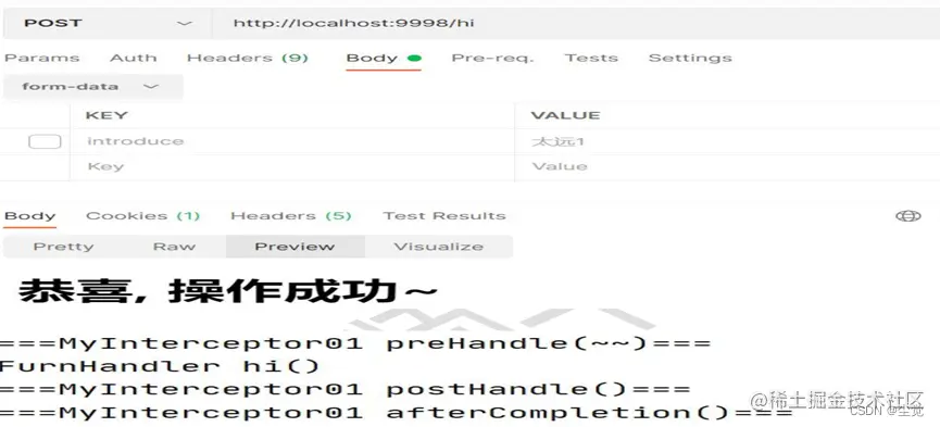 - postHandle():这个方法在目标方法处理完请求后执行