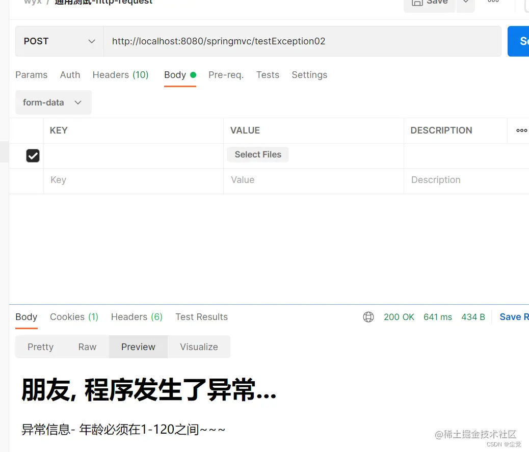 (postman) 测试http://localhost:8080/springmvc/testException04