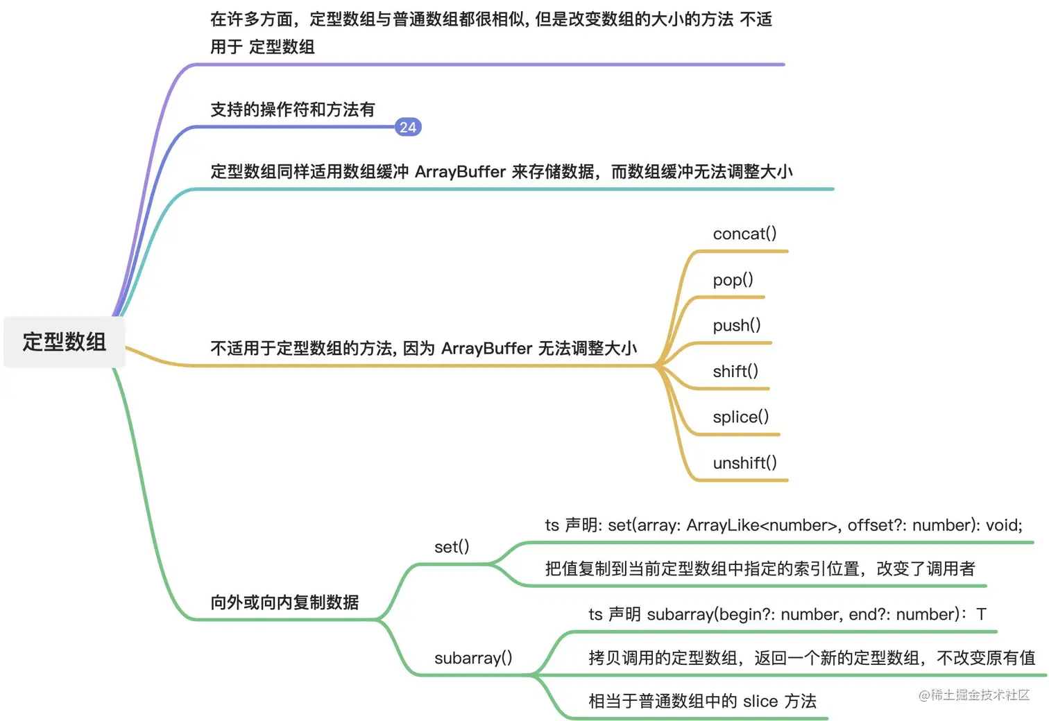 在大多数场景下,定型数组和普通数组拥有相同的方法和操作符、属性