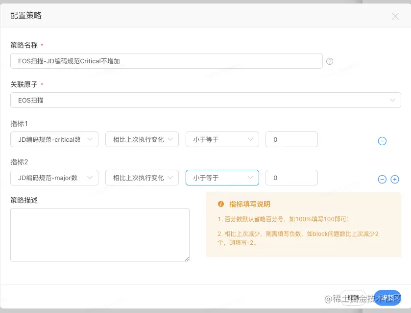 1.EOS代码扫描,该扫描会扫描代码中不规范的情况,按照代码规约不同,会有不同的级别,包括 WARNING, MAJOR, CRITICAL, BLOCKER四种级别,基于不同级别可以设置拦截规则,如果代码不符合设定的拦截规则,将不予merge。