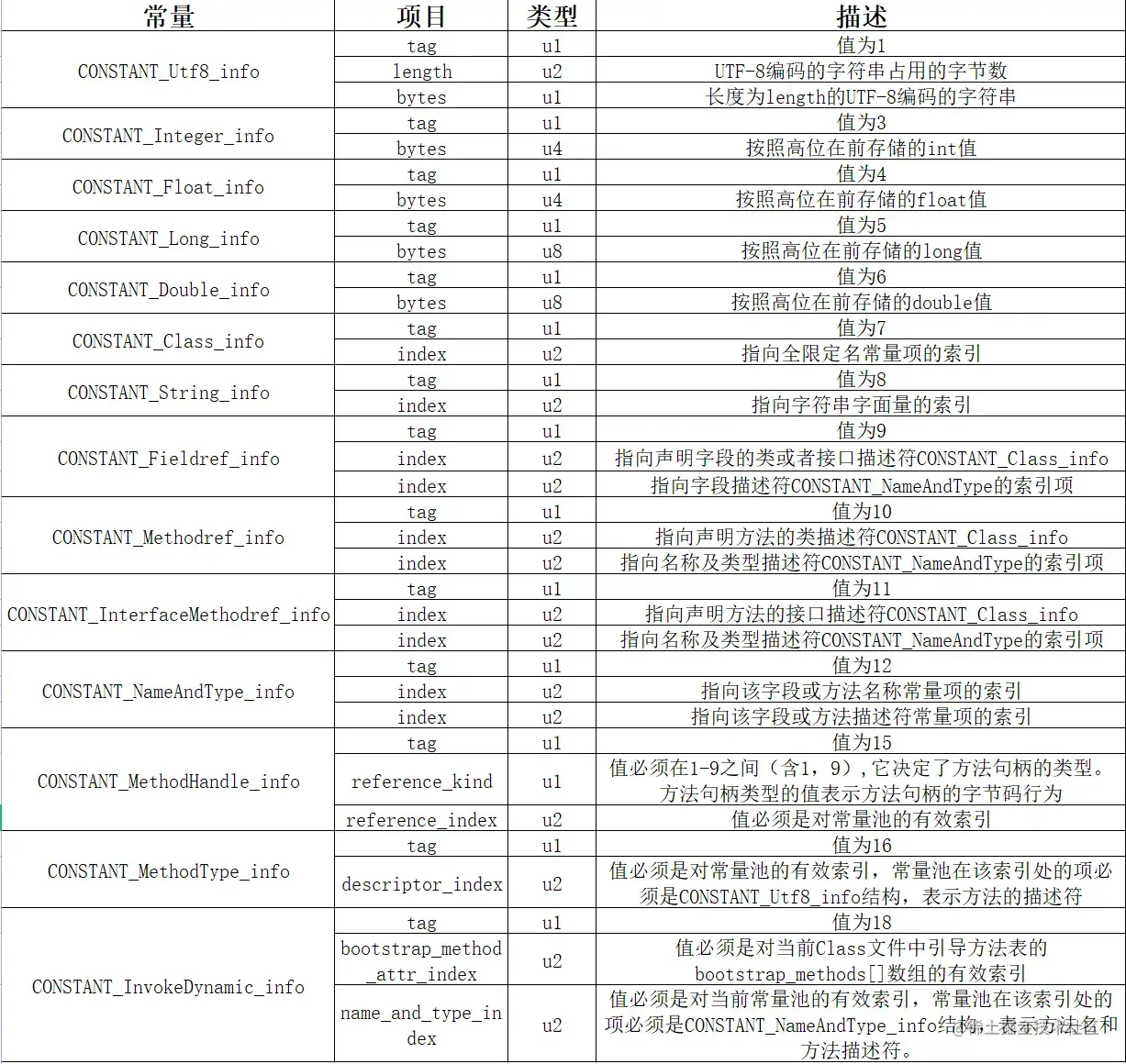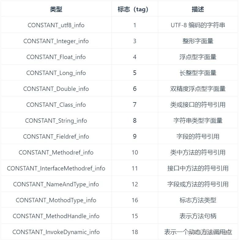 常量池类型结构定义