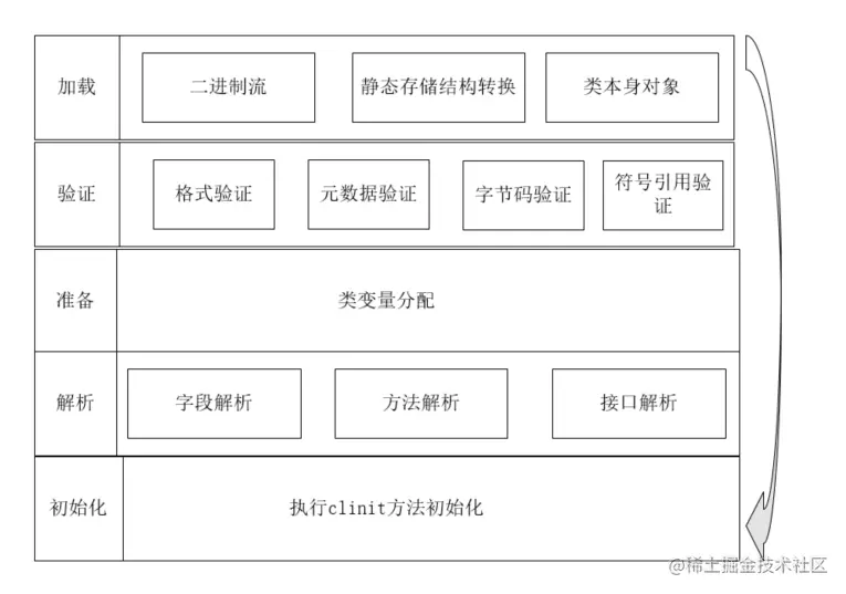 初始化,为类的静态变量赋予正确的初始值,JVM负责对类进行初始化,主要对类变量进行初始化clinit方法。在Java中对类变量进行初始值设定有两种方式:定义静态变量并指定值、使用静态代码块