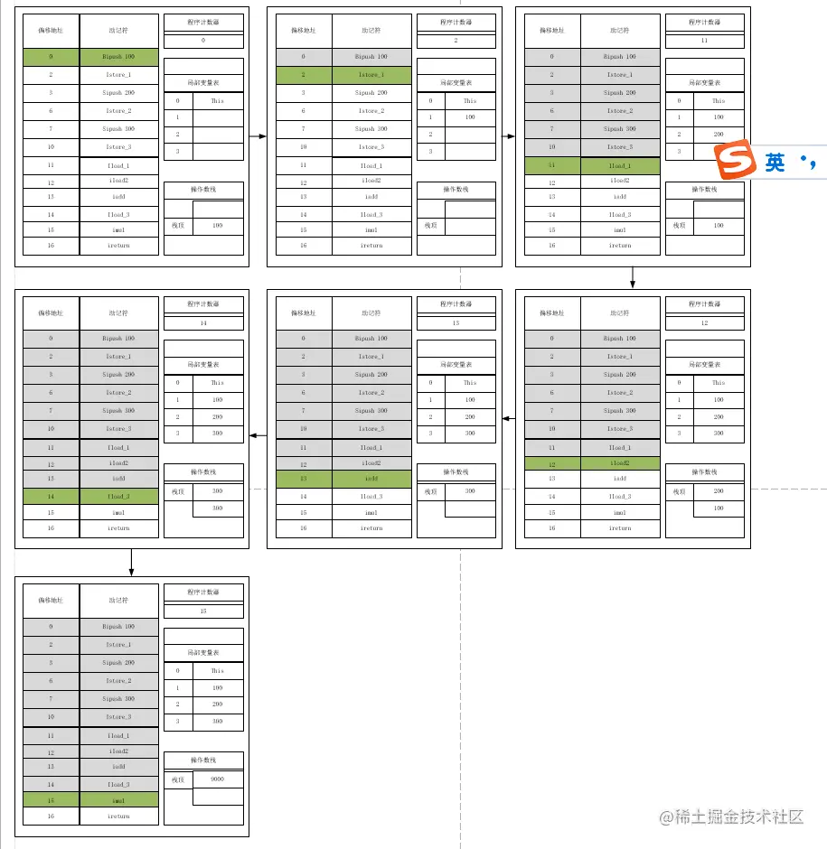 以上字节码执行过程如下