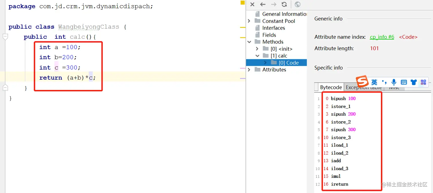 下面是一个基于栈来展示在虚拟机中字节码是如何执行的。