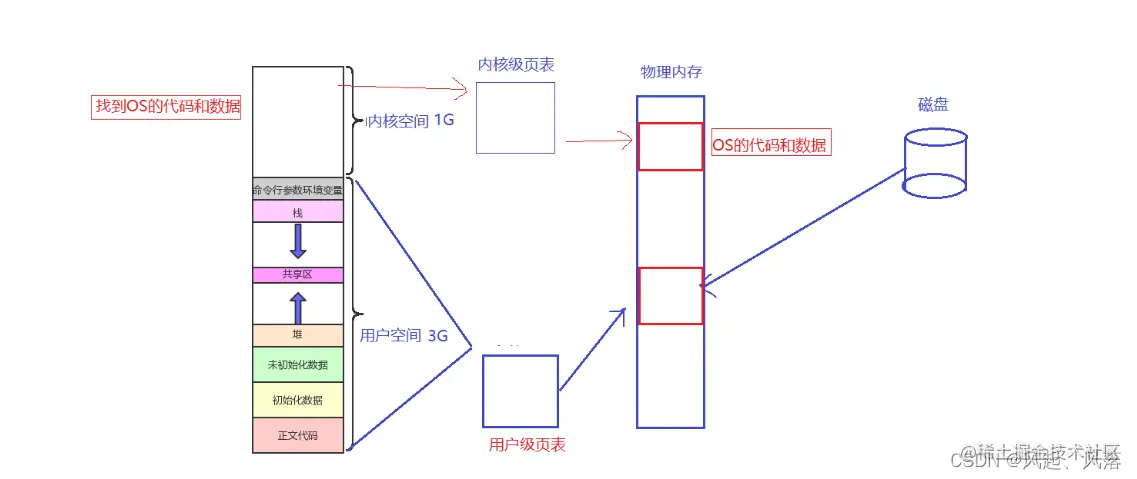 0-3G属于用户空间 3-4G属于内核空间