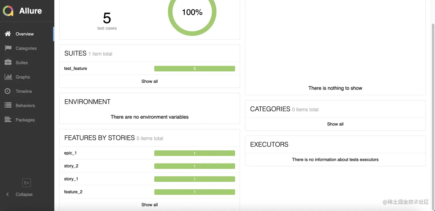 报告展示:类别会展示在测试报告的 Behaviors 栏目下。