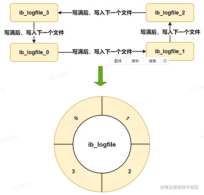 硬盘上存储的 redo log 日志文件不只一个,而是以一个日志文件组的形式出现的,每个的redo日志文件大小都是一样的。