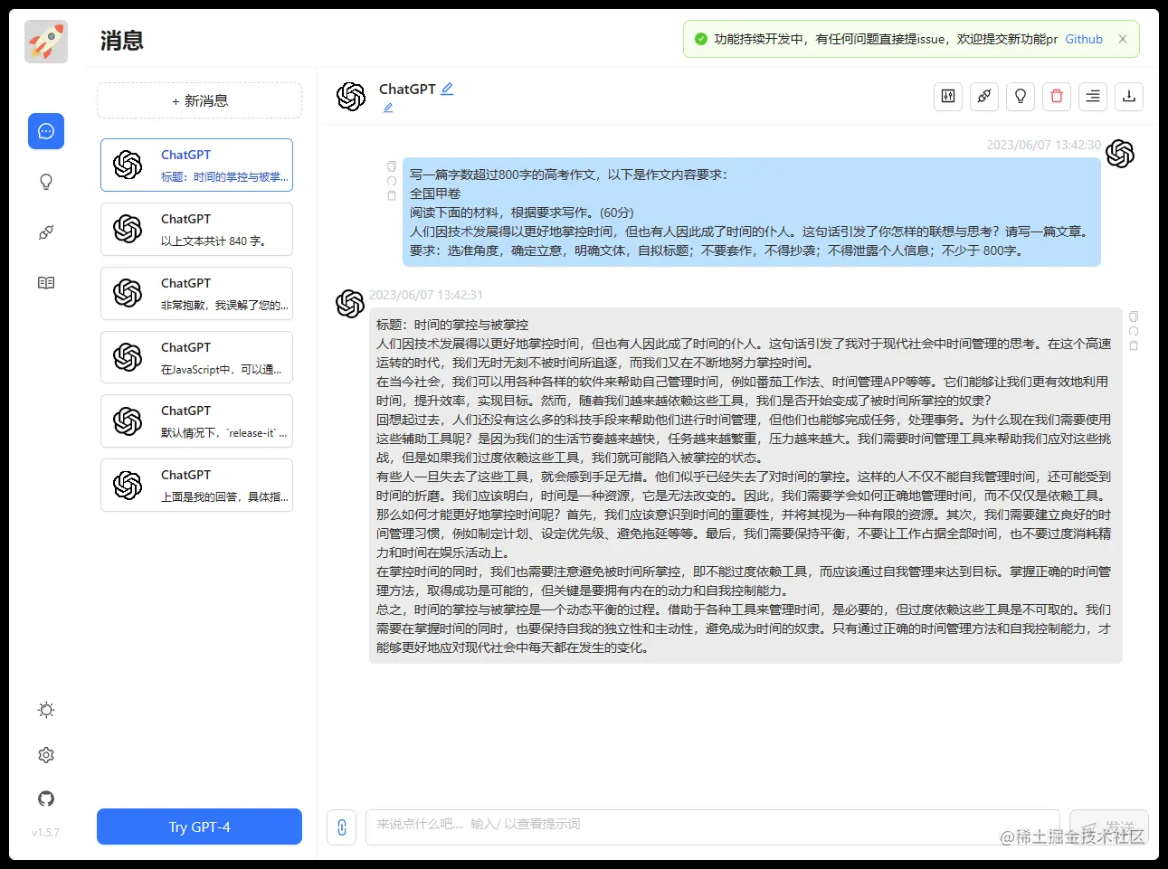 以上是ChatGPT写的高考作文,这文风,这速度,妥妥的应试高手。