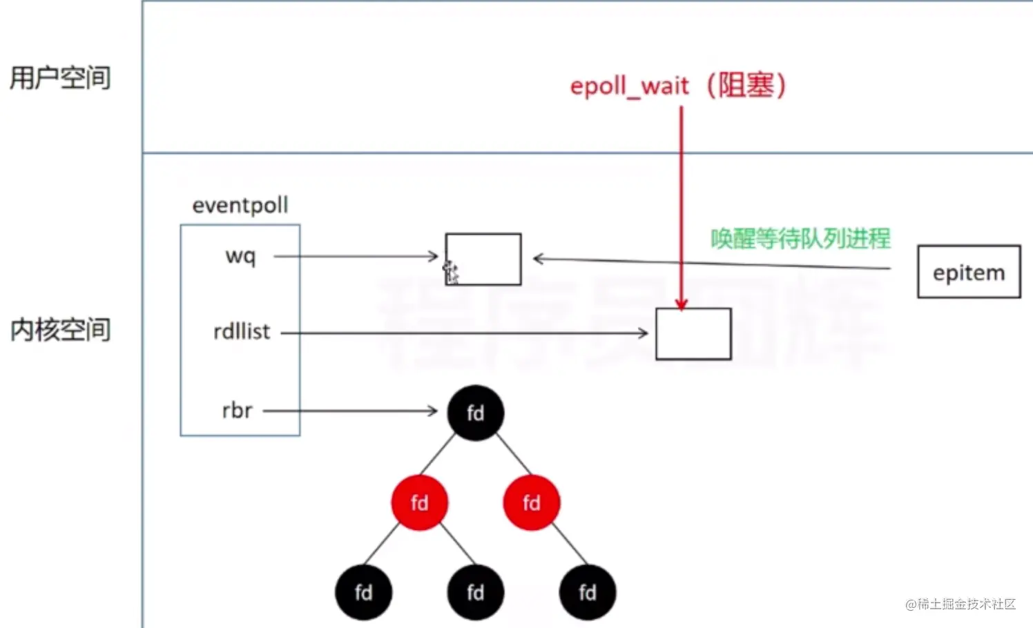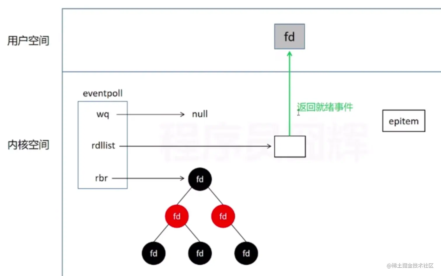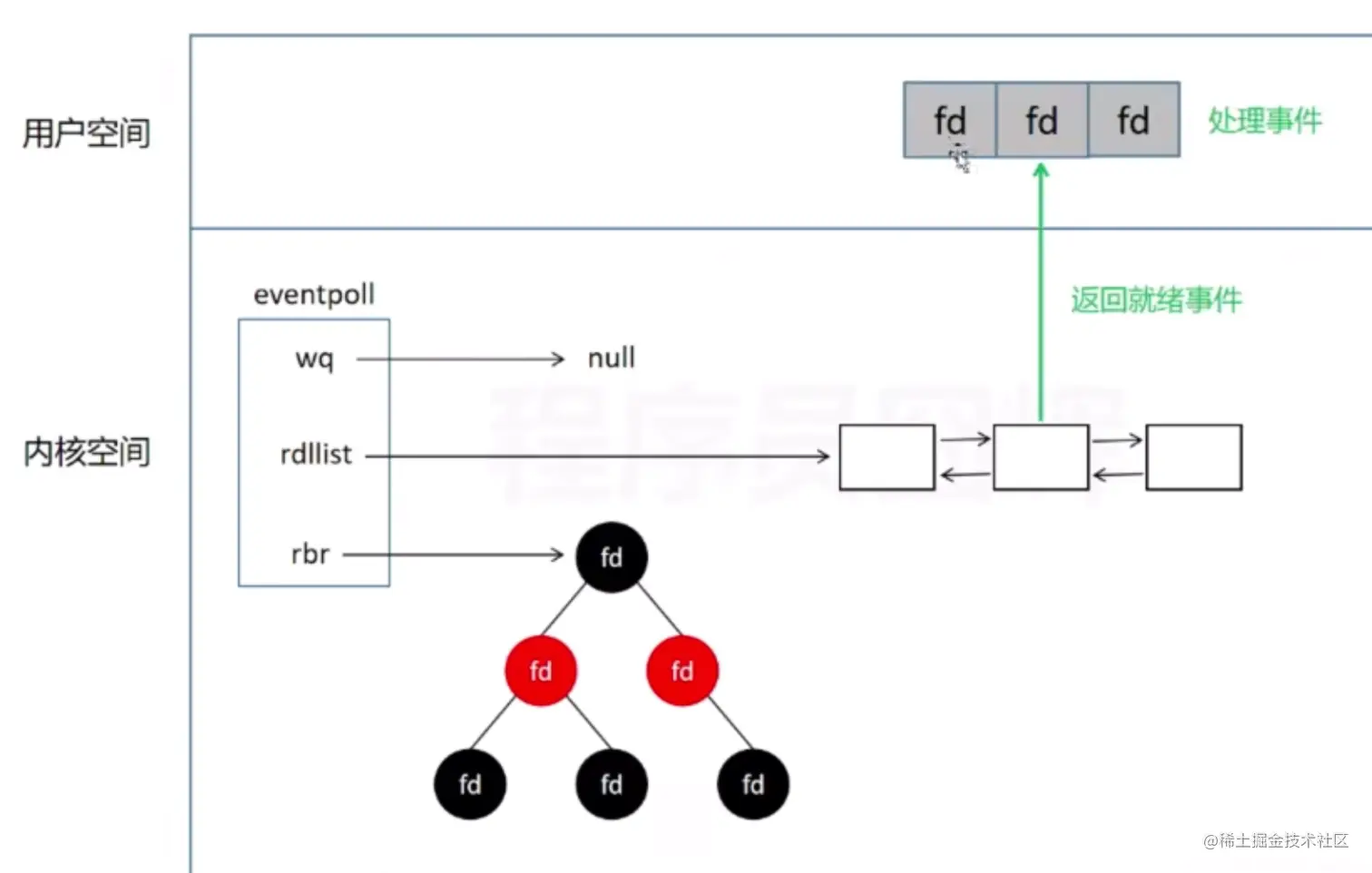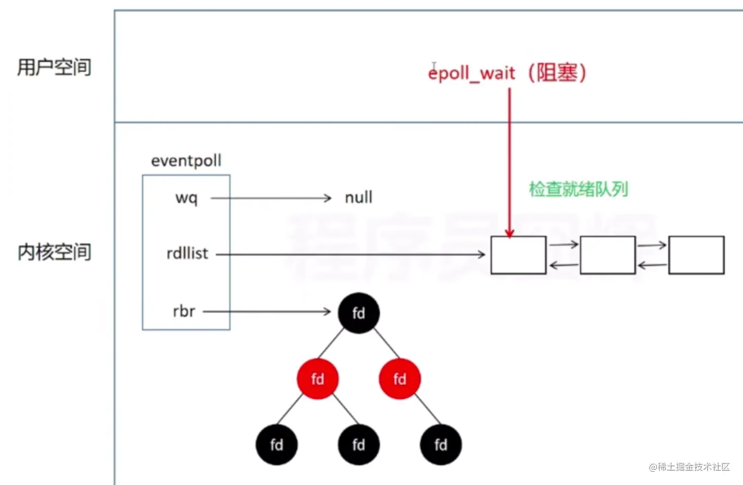 - rdllist就绪列表,fd对应的socket如果是就绪的数据已经到了,就添加到就绪列表里面。