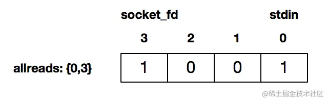 FD_SET(socket_fd, &allreads); //以及连接套接字描述符 3 设置为待检测
