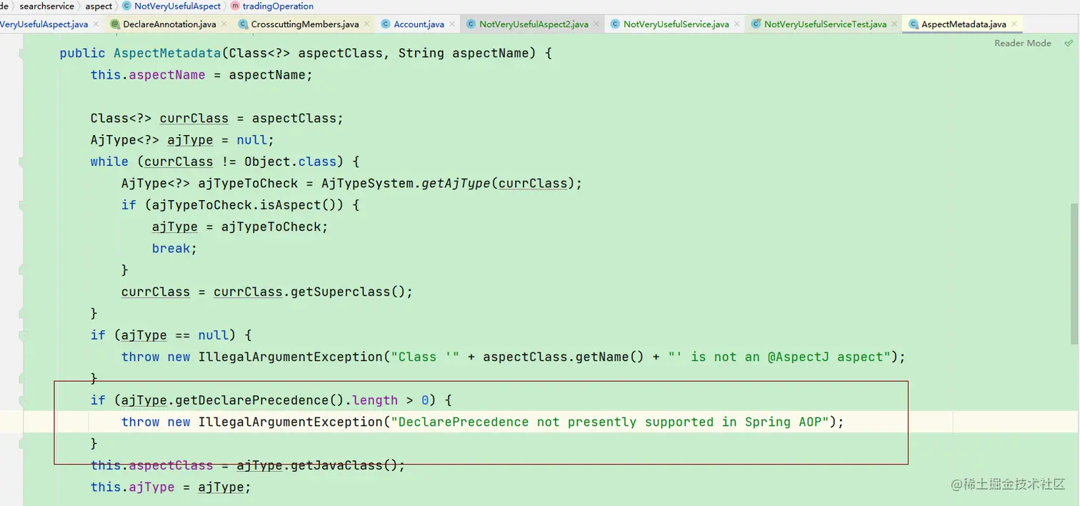 - final方法,因为无法被运行时生成的子类覆盖,所以无法被织入其他逻辑