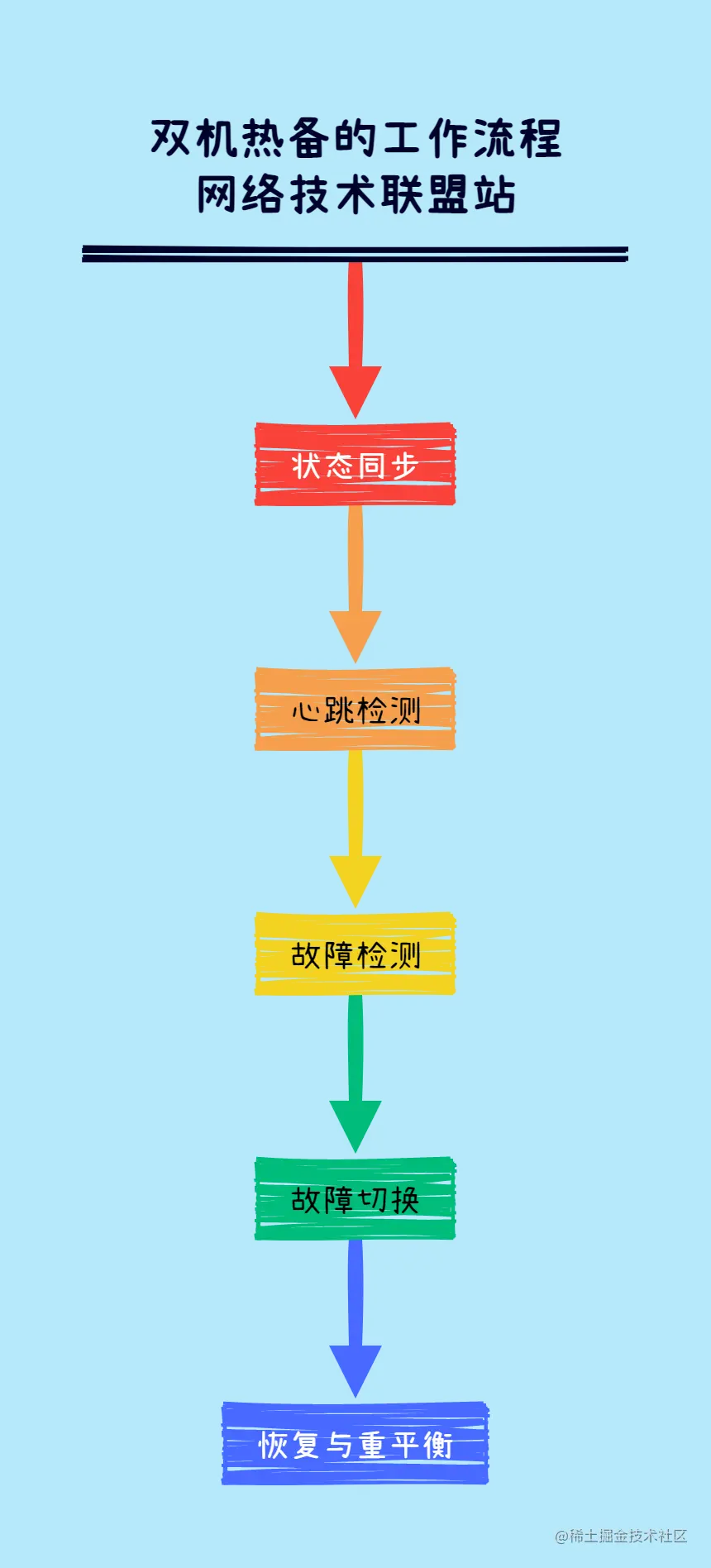 双机热备技术的核心原理是实现设备之间的状态同步和故障检测。