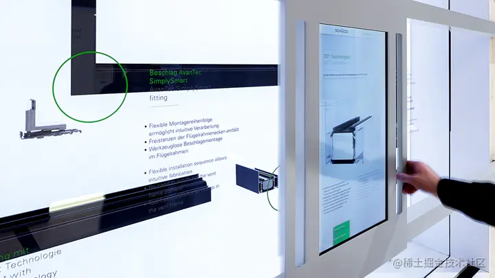 1、自动巡航:新款的互动滑轨屏可支持自动巡航播放功能,如振邦视界的互动滑轨屏。