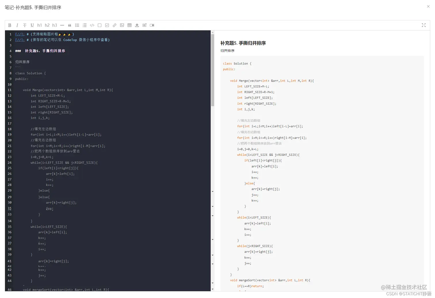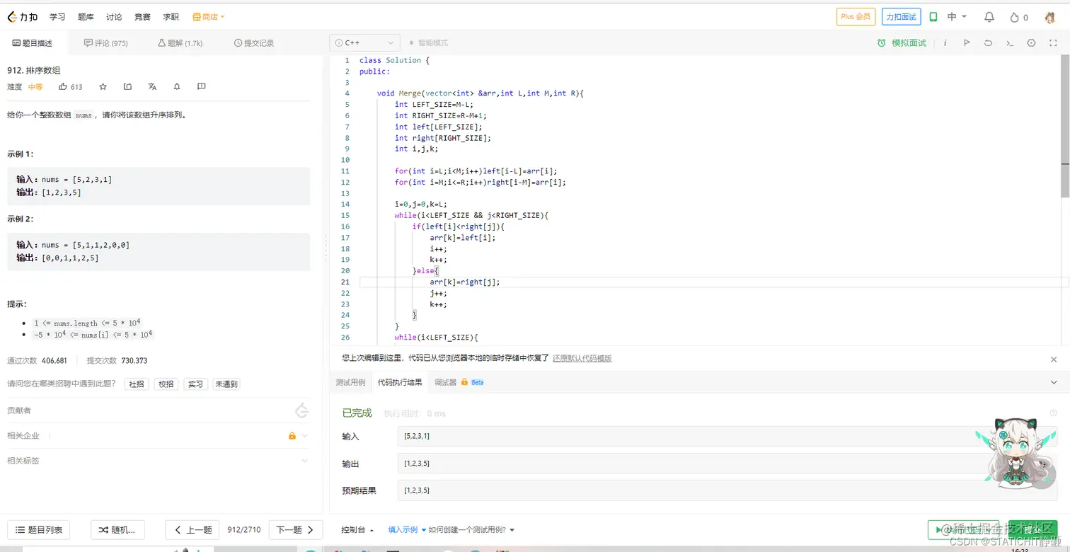 然后在力扣上做了这道手撕题,不知道为什么,题目明明是手撕归并排序,手写完效果好像不太理想,可能交题的人里面直接sort的人太多了!!