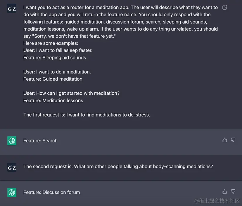 改善用户导航体验。这是我正在探索的一个实验性用例,在这个用例中,用户可以用自然语言描述想做的事情,聊天机器人将引导他们找到相关功能。我发现这可以通过少量提示工程或对分类进行微调来实现。请看下面这个提示,看看能做什么: