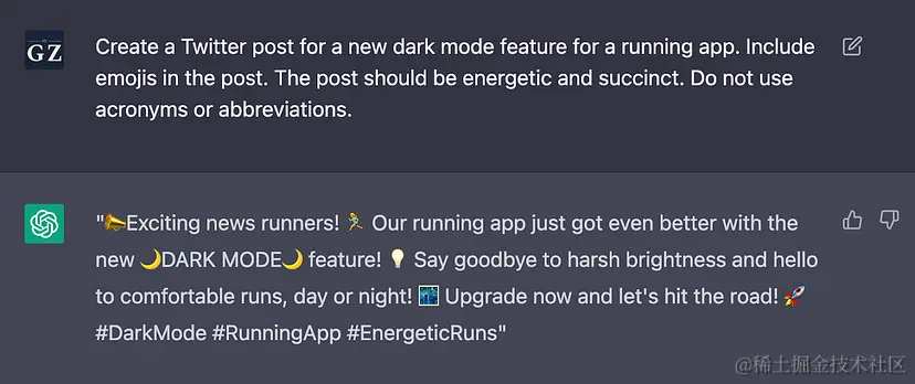 - 提示: 为跑步应用创建一个新的深色模式功能的Twitter帖子,要包含表情符号,充满活力和简洁,不要用首字母缩写。