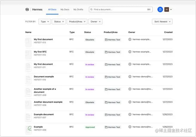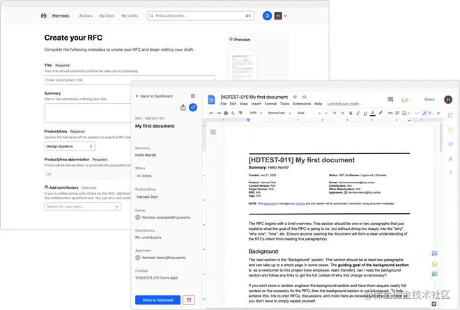 Hermes 是一个由 HashiCorp 创建的开源文档管理系统,用于帮助简化写作和文档流程。据介绍,HashiCorp 内部员工使用 Hermes 编写、审查、批准、发现和处理已被弃用的文档。