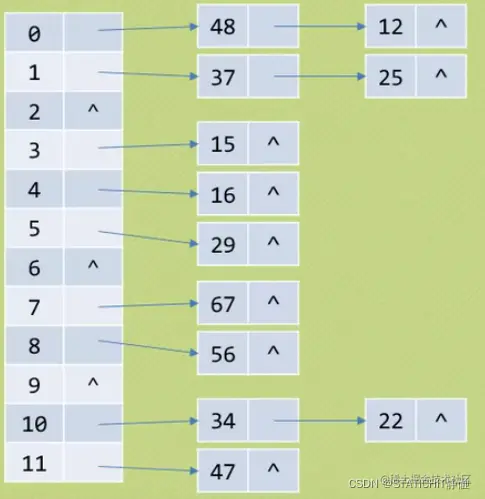 在散列表中只储存所有同义词子表的头指针,遇到冲突直接增加结点即可,但是这样带来了查找时需要遍历单链表的性能损耗。