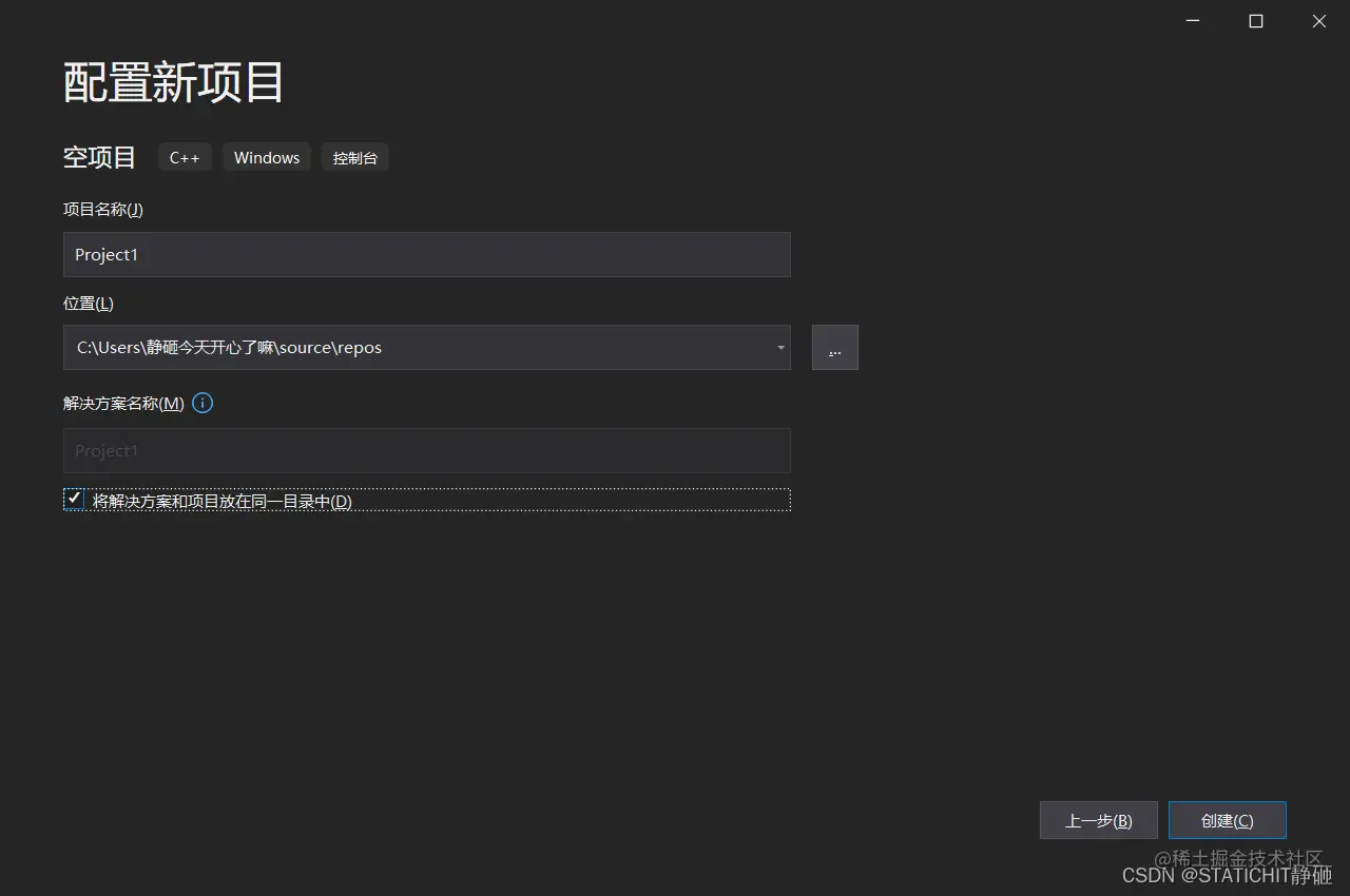 填写项目名称和文件保存地址以及解决方案名称,下一行的“将解决方案和项目放在同一目录下”选不选都行。勾选后解决方案就会和项目放在同一目录下,否则解决方案和项目所在目录就是同等级的。